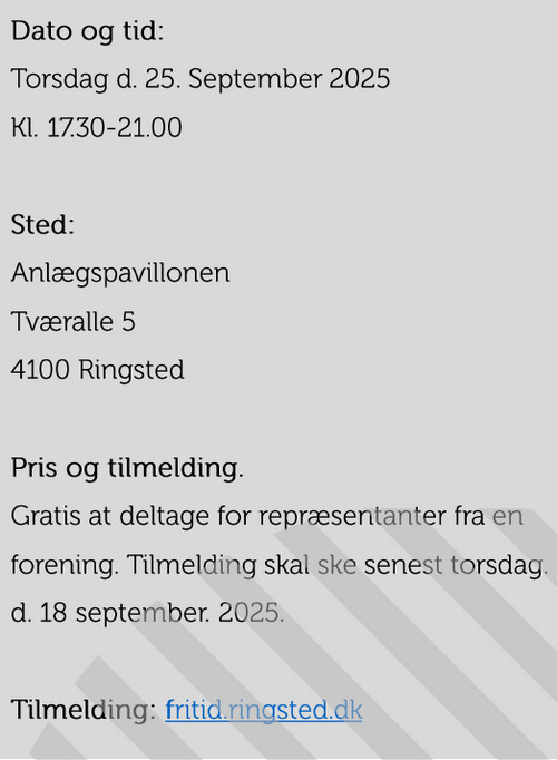 Jeg håber, rigtig mange kan få tid til at være med, og vil gerne høre fra alle senest på tirsdag aften.
